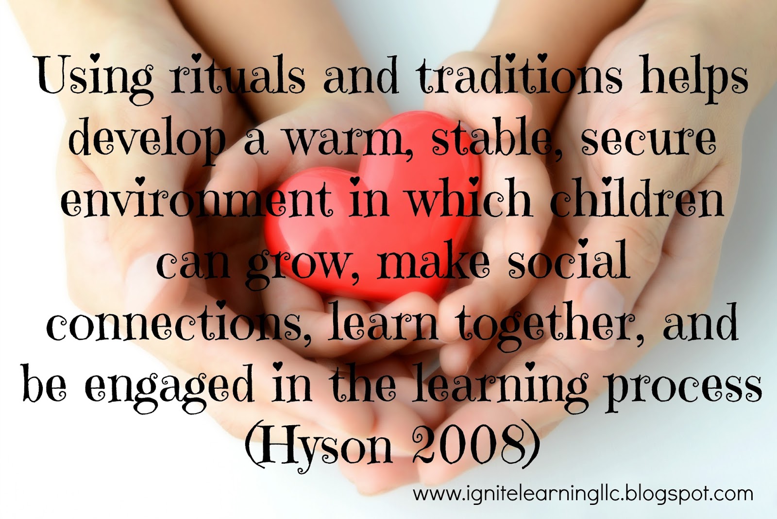 The connections we build with children through loving rituals and traditions help us set aside a sacred space to create a climate of love and acceptance–A time to focus on what really matters!