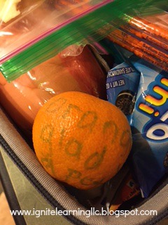 I’ve written on sticky notes, napkins, fruit and baggies! You never know where you’ll find a little “party” in your lunch box!